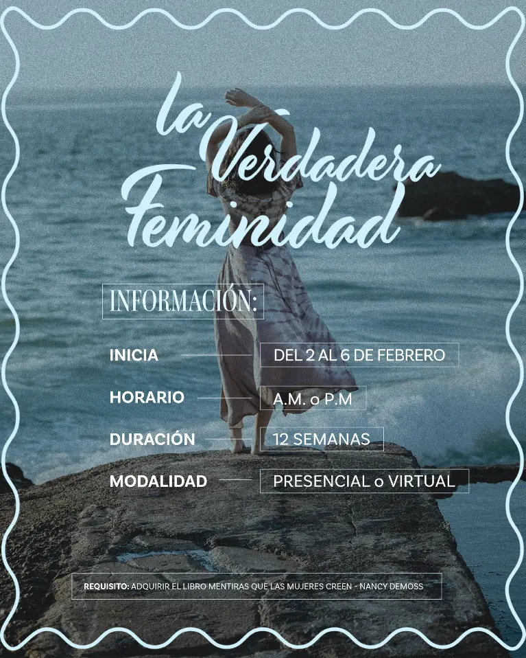 El curso no tiene costo, solamente deberás adquirir el libro “Mentiras que las mujeres creen y la verdad que las hace libres” (versión revisada y ampliada) de la autora Nancy DeMoss Wolgemuth.